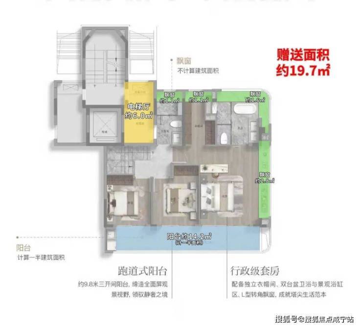 这个户型的附赠率,更高!实际可使用面积高达约234㎡,实得率超139%!