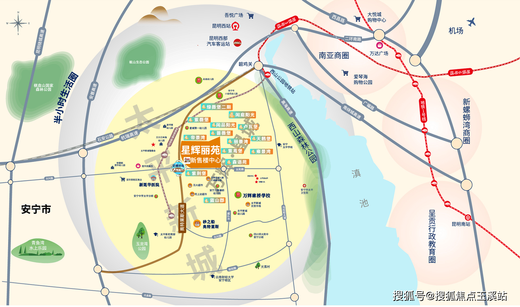 云南万辉房地产开发有限公司隶属厦门安居控股集团有限公司,是2003年昆交会上昆明市政府和安宁市政府招商引资的重大项目之一,注册资金两亿,位于安宁市太平新城核心位置,占地约2800多亩,项目预计投资达80多亿,总建筑面积约200万平方米,包含住宅、商业、学校、湿地公园及城市道路等建设,自2006年开发至今,已顺利开发1-12期项目,目前除、12期项目正在建设外(已全部封顶),1至11 期项目均如期交付,已入住约7400户,2.2万余人。
